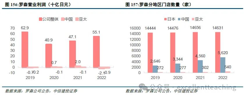 以日本便利店企业罗森为例,罗森早在 1996 年进驻中国,2003 年门店数量仅为约 100 家,2010 年-2012年中国门店数量维持在 300 家左右, 2015 年之后罗森加速开店。即便深耕中国多年,罗森中国业务多数时间仍处于亏损状态,主要原因为中国本土零售市场的激烈竞争、合资导致的经营管理权分散、中国文化和消费习惯不同于日本、加盟管理体系不同等等。