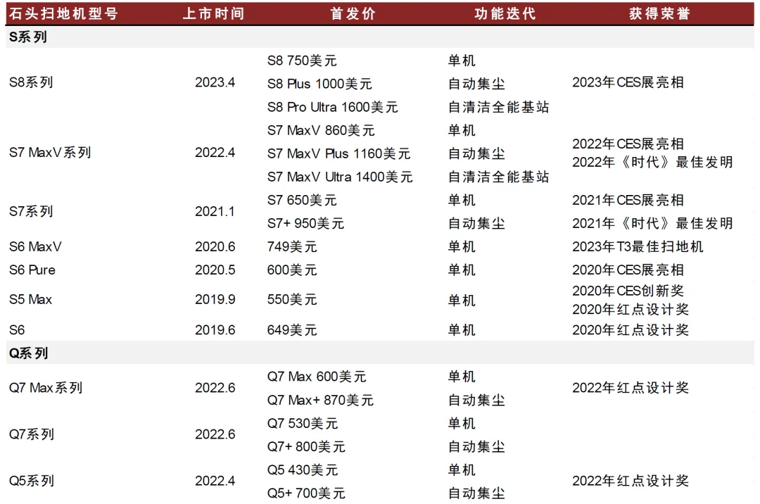 在小家电行业,石头科技深耕激光算法技术领域以提升扫地机智能体验水平。从2017年出海至今,石头科技持续升级产品。2017年石头推出海外第一款自主品牌激光导航扫地机器人S5;2019年推出迭代产品S6,获得市场好评;2020年推出S6 MaxV高端新品,成为当年销售主力;2021年发布新品S7系列,引入声波震动擦地;2022年4月,石头全能基站产品S7 MaxV Ultra海外首发定价1,400美元,凭借产品功能实现了超越iRobot的定价;2023年推出的S8 Pro Ultra,无论在扫拖功能,还是导航避障、基站功能上都表现更优于iRobot此前推出的其目前最高端扫拖一体新品Roomba Combo j7+,用户使用体验也更好,在美亚、日亚、德亚均获得消费者好评。随着石头科技等国产扫地机产品力不断提升,欧美本土扫地机龙头iRobot近几年市场份额不断下降。据iRobot公司公告,iRobot在全球售价高于200美元的扫地机器人品类中的市场份额已从2014年的63%下滑至2020年的46%。数字化转型网www.szhzxw.cn