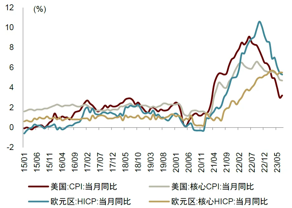 近年来海外地区在经历高通胀后,居民生活物价水平升高,同时,居民超额储蓄持续消耗,对消费支撑逐步减弱。自2021年以来,海外市场在经历疫情、国际形势变化等事件后物价持续走高,尽管近期数据有所回落,但仍高于疫情前水平。以美国为例,据美国劳工局数据,美国7月CPI同比增速从上月3.0%反弹至3.2%,高于2015-2019年平均的1.6%。此外,疫情后财政补贴退坡、居民实际收入下滑和消费活动修复都加速了美国居民超额储蓄的持续消耗,对未来美国居民消费的支撑或逐步减弱。