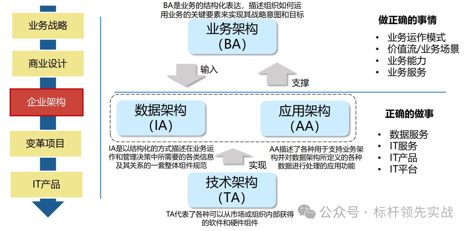 - 明确企业的治理结构、业务能力、业务活动和业务数据。