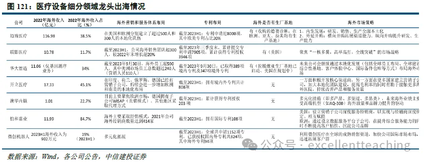 医疗设备出海产品众多,包括影像设备、超声、内窥镜、监护仪、呼吸机等。大型影像设备领域国产产品在海外份额仍相对较低,但联影医疗等公司产品性能能够达到全球领先水平,未来出海潜力较大;内窥镜领域国内产品性能逐步接近进口品牌,海外渠道体系仍需逐步拓展;监护仪、麻醉机等领域迈瑞医疗的产品性能已得到广泛认可,未来全球市场份额有进一步提升空间。 数字化转型网www.szhzxw.cn