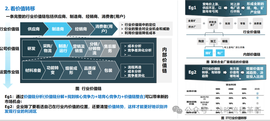 - 价值链分析:评估企业内部活动如何创造价值和成本。
