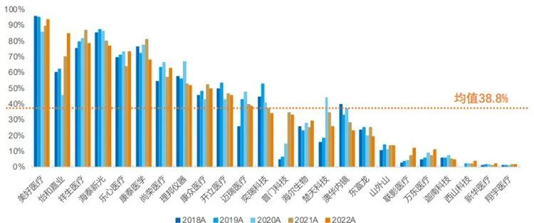 根据2022年年报披露的医疗设备企业海外业务平均占比达到 38.8%,其中部分企业已形成较为成熟的海外销售体系。