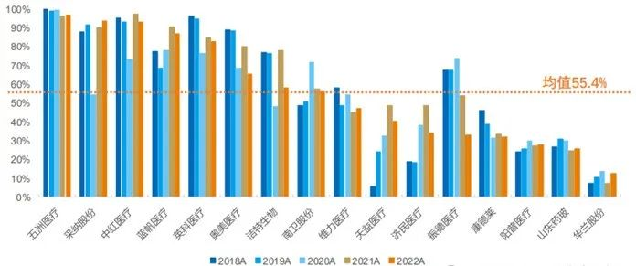 国内低值耗材上市公司供应产品主要包括一次性医用手套、注射器、穿刺针、医用敷料、 医用导管、医用玻瓶等产品,根据2022年年报披露的海外业务平均占比达到 55.4%。