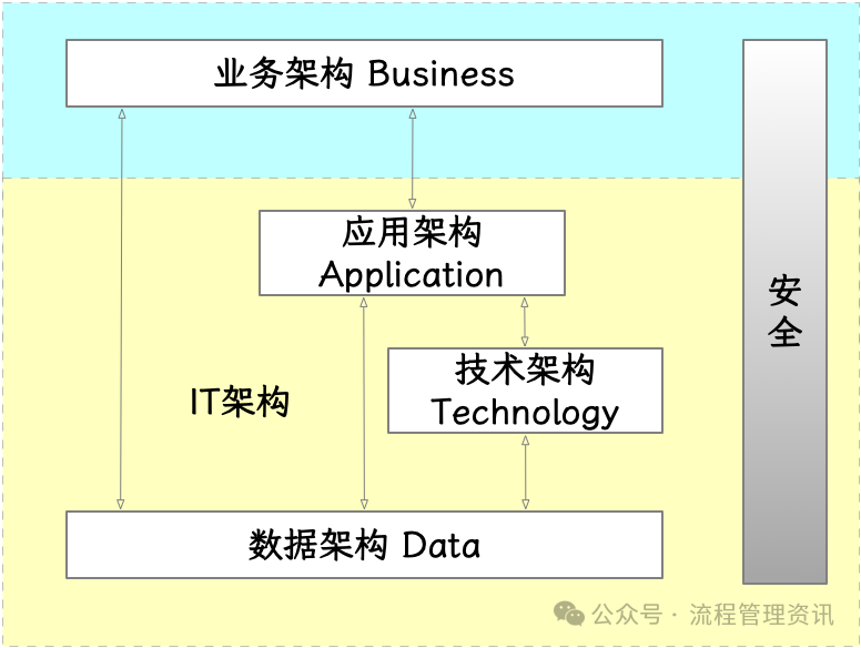 其中,应用架构、技术架构、数据架构,就是我们常说的IT架构。