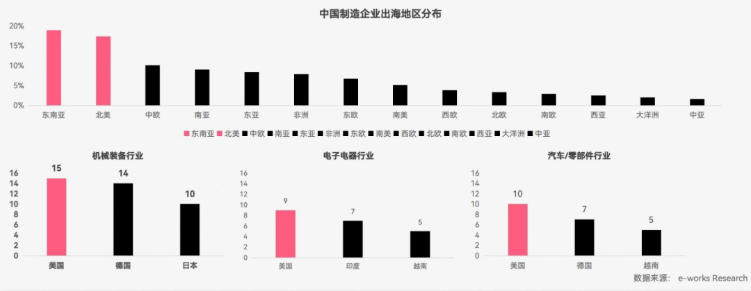 制造业出海地区以东南亚为主,不同细分行业热门出海目的地国家不同