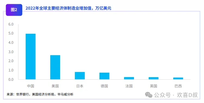 根据世界银行2022年的数据,中国制造业增加值已接近5万亿美元,占全球总量的30.7%,制造业规模连续13年稳居全球首位。值得一提的是,中国制造业的增加值已超越美国、德国、日本、英国、法国和巴西等国的总和,这充分展现了中国制造业的雄厚实力。数字化转型网www.szhzxw.cn