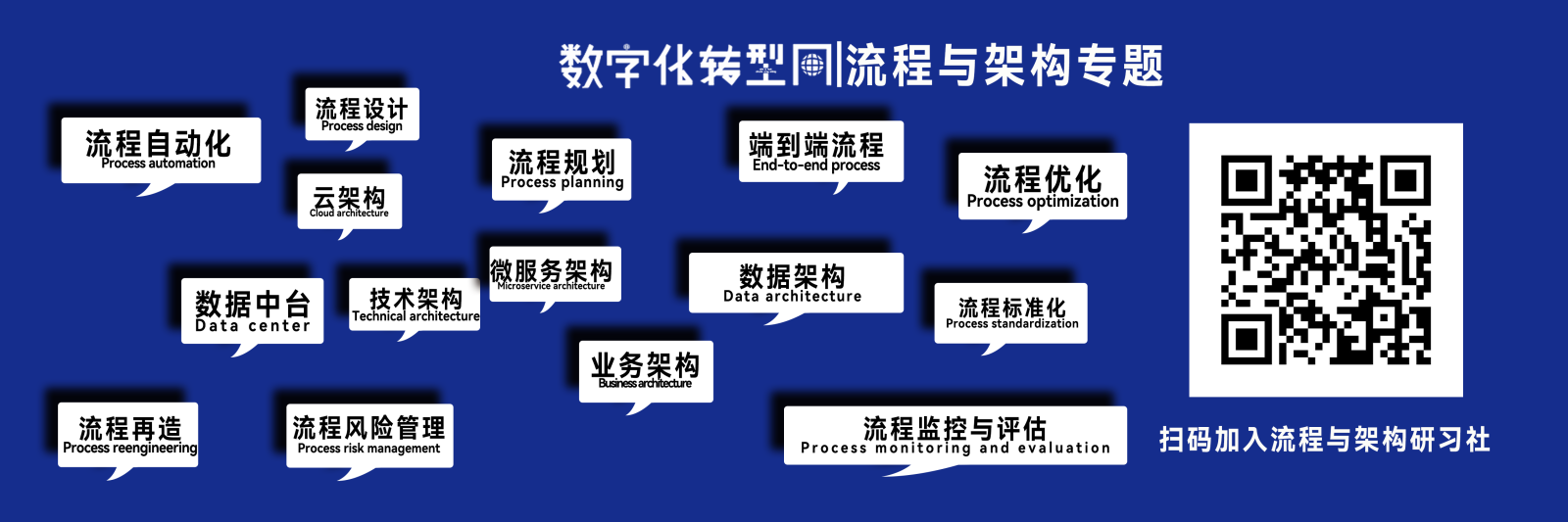 数字化转型网流程与架构专题将关注流程规划、流程设计、流程优化、流程风险管理、流程再造、流程自动化、流程标准化、流程监控与评估、端到端流程、微服务架构、分布式架构、云架构、数据架构、业务架构、技术架构等相关方面。