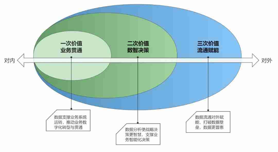 Under these conditions, such organizations, even if they introduce external data, will not be able to effectively use it and form a value loop that will contribute to the development of the business. Therefore, the development of data elements needs to be promoted as a whole, and the primary and secondary values need to be released continuously. On the basis of more extensive business integration and data-wise decision-making, the external enabling value of data circulation should be fully brought into play.