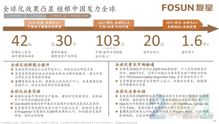 复星继续进化全球战略:中国+全球双轮驱动,讲好中国的故事,也要画好海外的蓝图。在此基础上,复星陆续布局了印度Gland Pharma等项目,也大获成功。