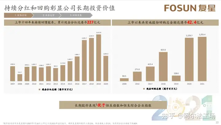 同时,复星上市以来共实施股份回购总金额达42.4亿元,体现了复星对自身投资价值的决心。复星长期股价表现亦显著跑赢恒生指数和恒生综合企业指数(自2007年7月16日至2021年12月31日)。