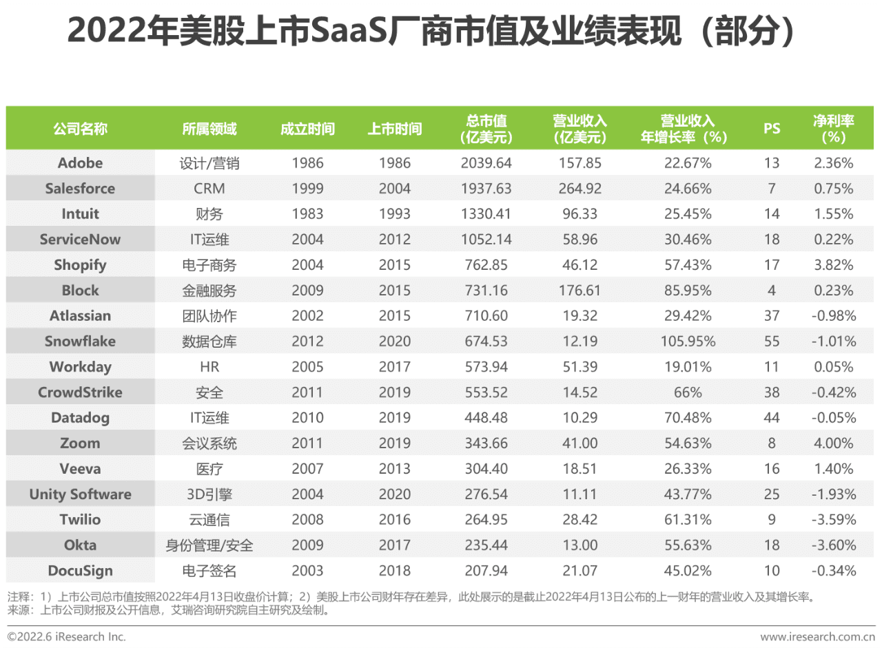 (八)美股SaaS厂商投资价值参考