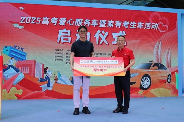 厦门 2025年6月5日 /美通社/ — 日前,在中共厦门市委文明办的指导下,由厦门市交通运输局、厦门市公安交警支队、厦门广电集团广播中心联合主办的“2025高考爱心服务车暨家有考生车活动”正式启动。活动现场,爱心车主代表、考生家庭代表及社会各界人士共同见证了这一暖心时刻。作为爱心支持企业,厦门太古可口可乐向活动捐赠18000瓶纯悦包装饮用水,厦门交通广播总监赵彬与厦门太古可口可乐市场及销售总监潘剑强共同完成爱心水交接仪式。