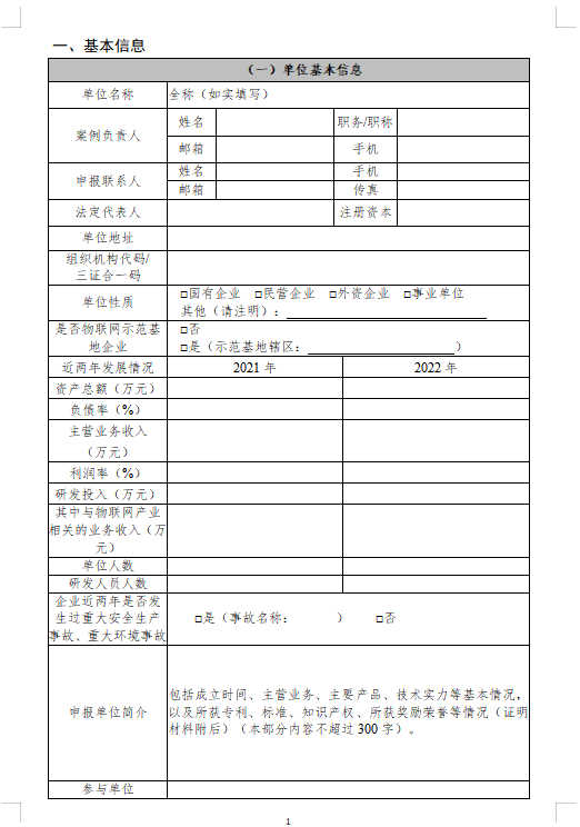 1.2023年物联网赋能行业发展典型案例申报书(模板).docx