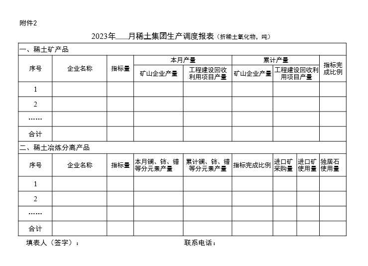 七、请各稀土集团按照调度报表(见附件2)要求,于每月10日(节假日顺延)前向工业和信息化部上报上月生产数据(含追溯系统数据填报)。