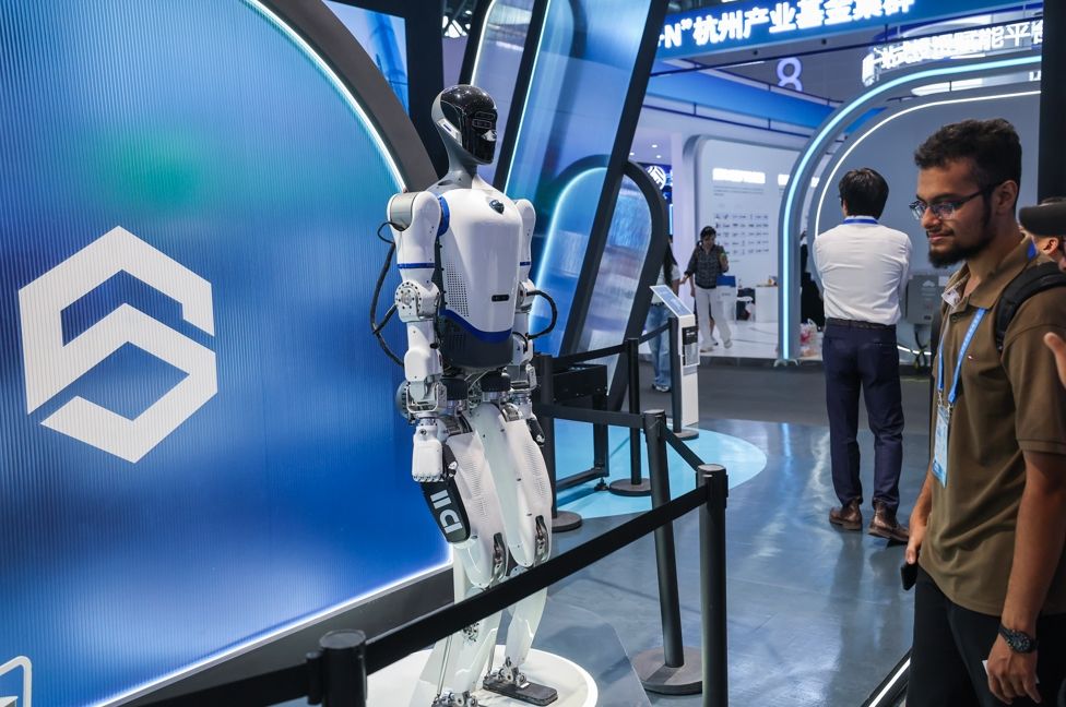 9月25日在第三届数贸会上拍摄的人形机器人展区 徐昱 摄