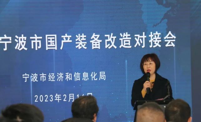 为全面贯彻落实国家、省、市稳经济一揽子政策措施,支持企业加大国产装备改造,提振发展信心,2月16日下午,我局举办2023年宁波市国产装备改造对接会。市经信局副局长、党组副书记谷霞出席活动并讲话。