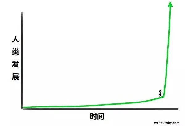 看上去非常刺激吧?但是你要记住,当你真的站在时间的图表中的时候,你是看不到曲线的右边的,因为你是看不到未来的。所以你真实的感觉大概是这样的:稀松平常。