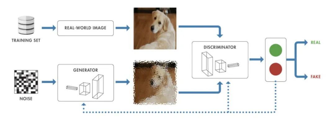 由生成器和鉴别器组成的深度学习模型框架,用于生成逼真的数据。
