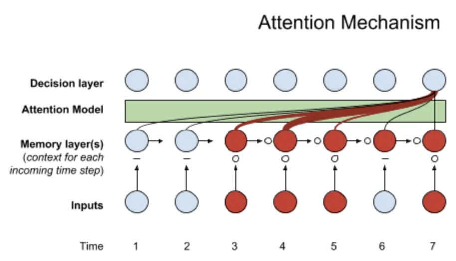 原理:模型学习在处理输入序列的每个步骤时,对关键信息给予更多的”注意力”。