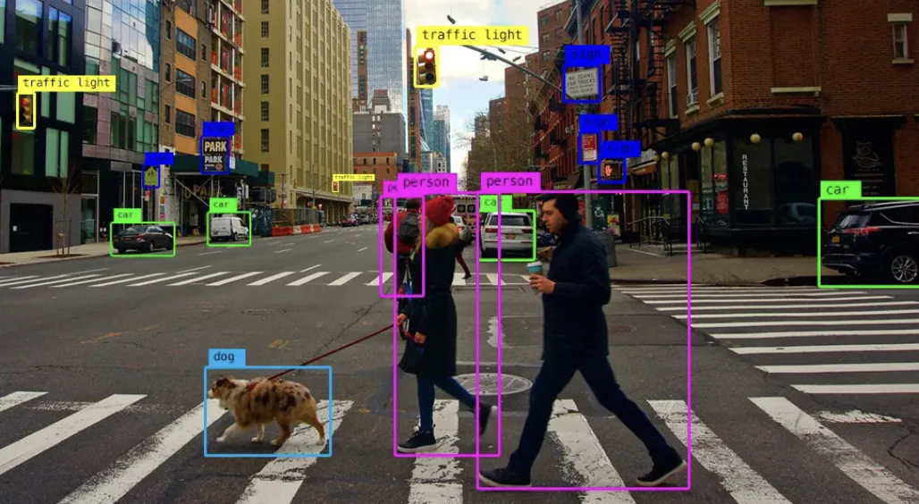 原理:结合深度学习模型,如CNN,不仅分类图像中的对象,还确定对象的位置和大小。