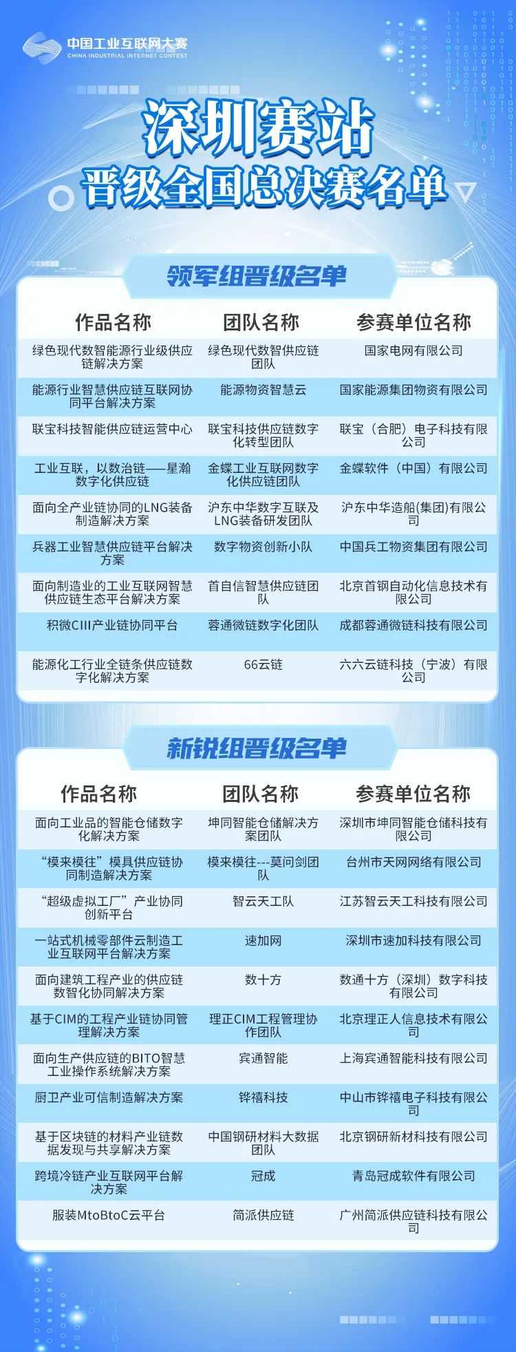 深圳赛场晋级全国总决赛名单