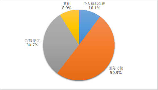 2022年第四季度,互联网信息服务投诉平台共收到互联网用户投诉33.58万件。其中,服务功能类投诉16.87万件,占比50.3%;客服渠道类投诉10.32万件,占比30.7%;个人信息保护类投诉3.40万件,占比10.1%;其他类投诉2.99万件,占比8.9%。在接入平台的互联网企业中,国美真快乐、NGA玩家社区等8家企业投诉处理及时率未达到95%的指标要求(详见附件2),世纪佳缘、知乎等投诉量增长较快,工业和信息化部已督促相关企业进一步改进服务,解决用户反映的问题。