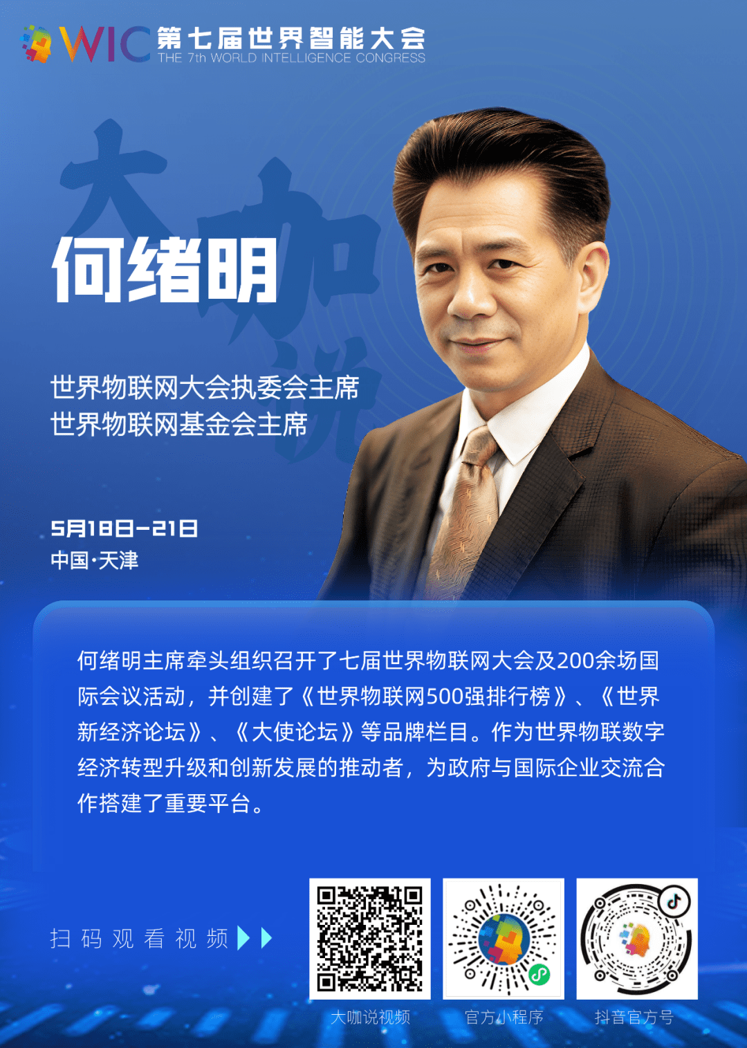 世界物联网大会执委会主席何绪明:智能科技的盛会,万物互联的未来,预祝世界智能大会顺利召开!数字化转型网szhzxw.cn
