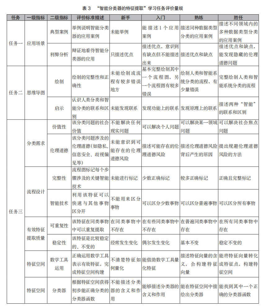 关键词:学习进阶;评价设计;量规;人工智能课程;人工智能素养
