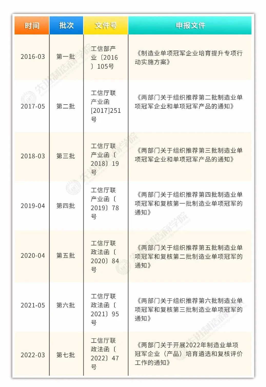 为引导制造企业专注创新和产品质量提升,推动产业迈向中高端,带动中国制造走向世界,工业和信息化部于2016年3月16日印发了《制造业单项冠军企业培育提升专项行动实施方案》(工信部产业〔2016〕105号,以下简称《实施方案》)。