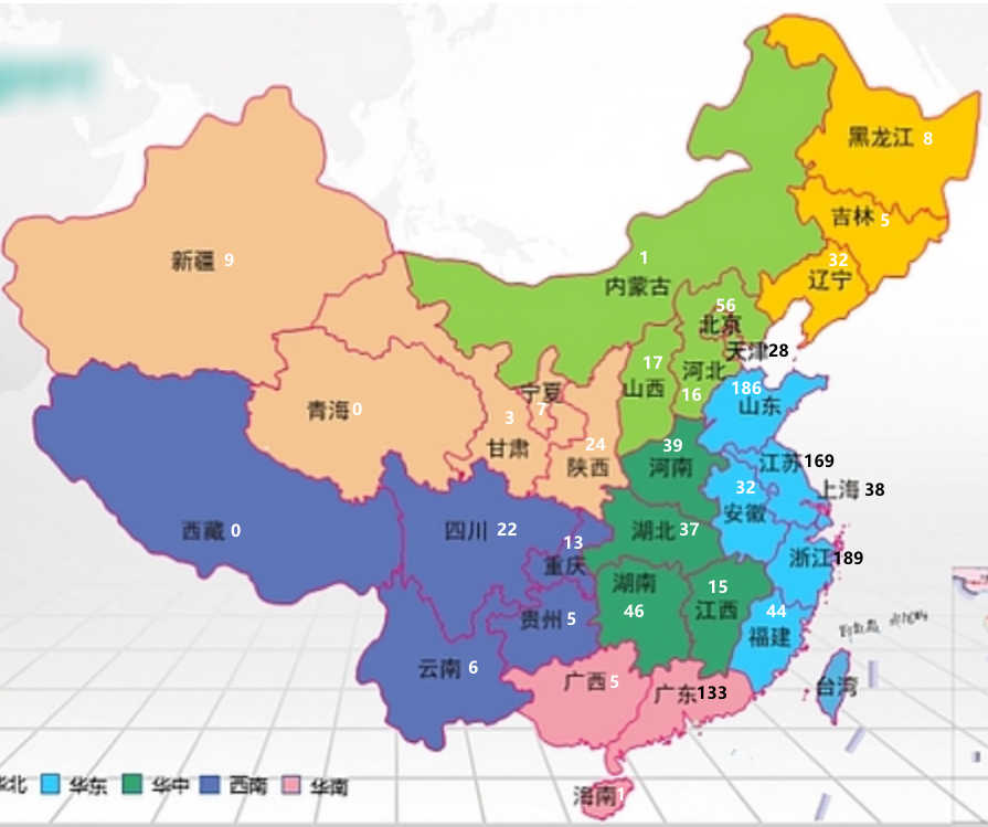 TOP5 plus plus accounts for 62% of the country, more than three fifths. Among them, there are 2 provinces and cities with 0, namely Qinghai and Tibet.