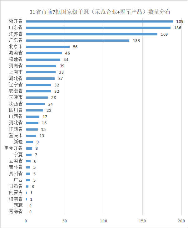 截至2022年底,前七批单项冠军示范企业+单项冠军产品全国共有1186个。