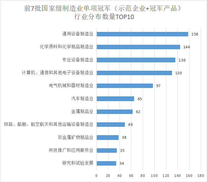 (三)制造业单项冠军行业分布分析