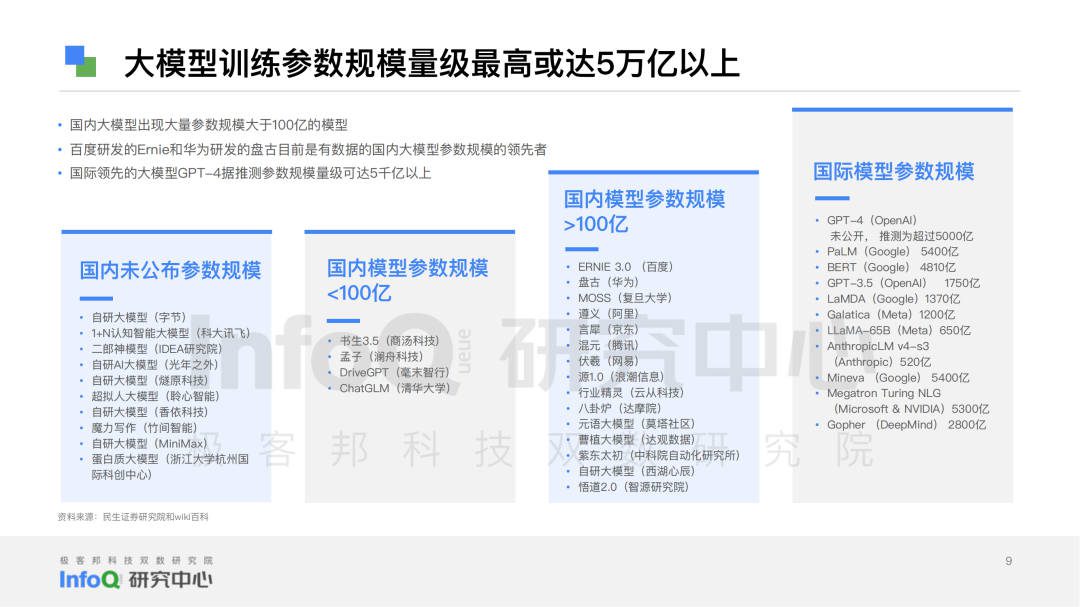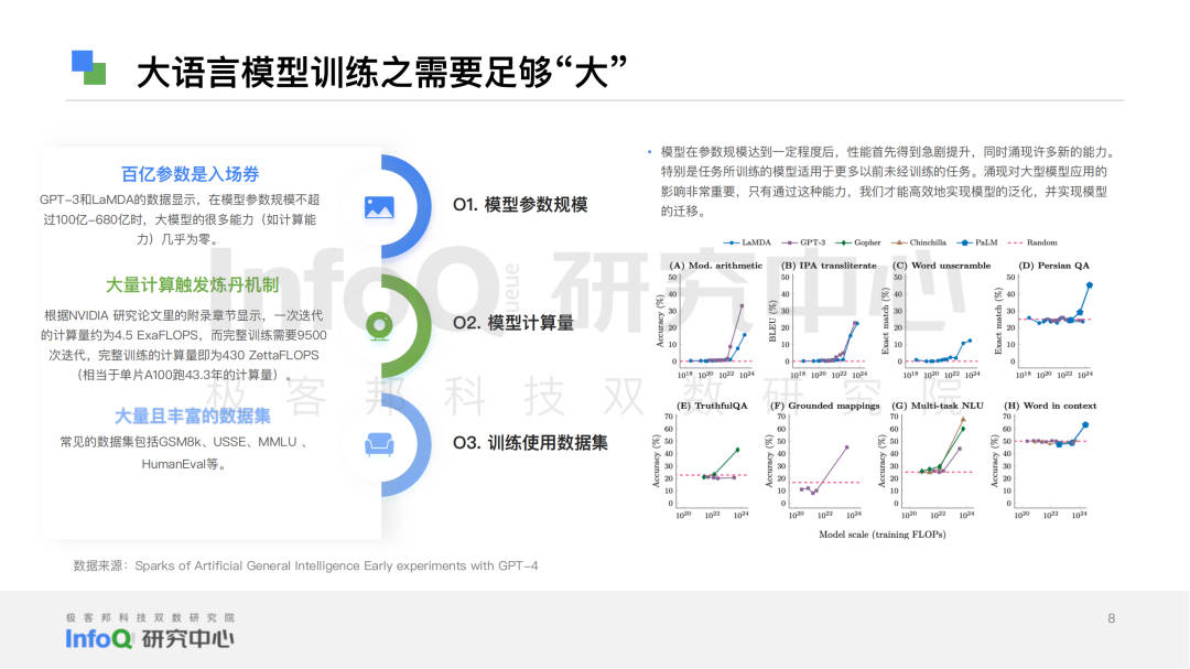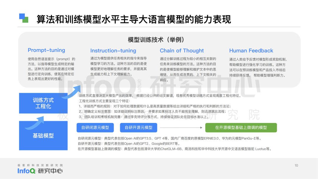 To this end, InfoQ Research Center based on three research methods: desktop research, expert interview and scientific analysis, searched a large amount of literature and materials, and interviewed 10+ technical experts in the field. At the same time, it focused on four major dimensions: language model accuracy, data basis, model and algorithm capability, security and privacy. It is divided into 12 sub-dimensions: semantic understanding, grammatical structure, knowledge question answering, logical reasoning, code ability, context understanding, context perception, multilingual ability, multimodal ability, data foundation, model and algorithm ability, security and privacy.