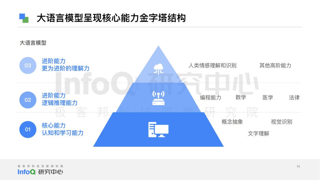 为此InfoQ研究中心基于桌面研究、专家访谈、科学分析三个研究方法,查找了大量文献及资料,采访了10+位领域内的技术专家,同时围绕语言模型准确性、数据基础、模型和算法的能力、安全和隐私四个大维度,拆分出语义理解、语法结构、知识问答、逻辑推理、代码能力、上下文理解、语境感知、多语言能力、多模态能力、数据基础、模型和算法的能力、安全和隐私12个细分维度。