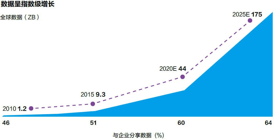 According to Bain research, global data volume has grown exponentially over the past decade, from 1.2 zettabytes to 44 zettabytes. In the next five years, global data will continue to grow at a high rate and is expected to grow from 44ZB to 175ZB.数字化转型网szhzxw.cn