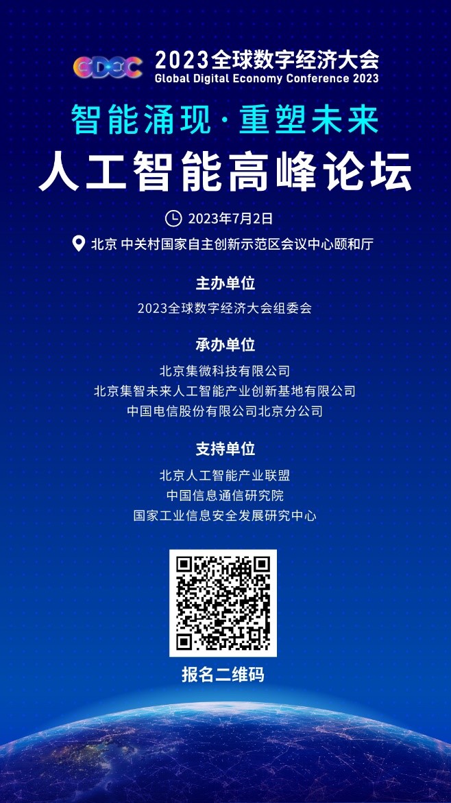 聚焦通用人工智能产业发展,本次大会重磅推出“人工智能高峰论坛”,由2023全球数字经济大会组委会主办,北京集微科技有限公司(爱集微)、北京集智未来人工智能产业创新基地有限公司、中国电信股份有限公司北京分公司承办,北京人工智能产业联盟、中国信息通信研究院、国家工业信息安全发展研究中心支持,主要围绕通用人工智能大模型发展等热点问题,着力打造国际化的通用人工智能产业合作交流平台,助力构建通用人工智能产业创新发展高地。本论坛将于7月2日14:00在北京中关村国家自主创新示范区会议中心颐和厅举办。