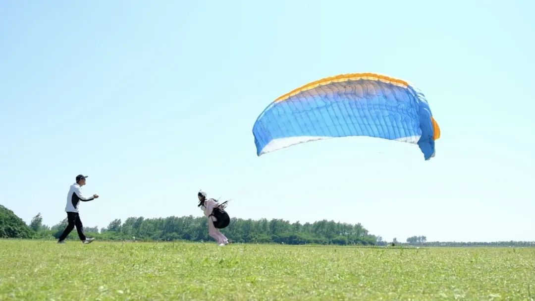 “免费招募5个朋友来玩滑翔伞!包吃包住包教会,只管玩的开心就行!”