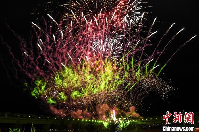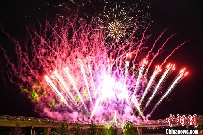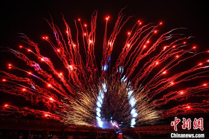 图为城市脉搏点亮仪式烟花秀表演现场。 贡嘎来松 摄