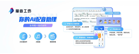 「魔音工坊(海外版DupDub)」是一款全球领先的集文案、配音、剪辑全流程一站式AI软件。「魔音工坊」拥有千款AI声音风格,支持37种语言,15种方言,百变风格适合各类视频创作及配音场景的声音商店;而独创的精准调音平台“声音的word编辑器”,能够满足声音搜索、声音克隆、生成式TTS“捏声音”等多种创造方式,并支持多人多端团队协作,用户总能找到最适合声音。