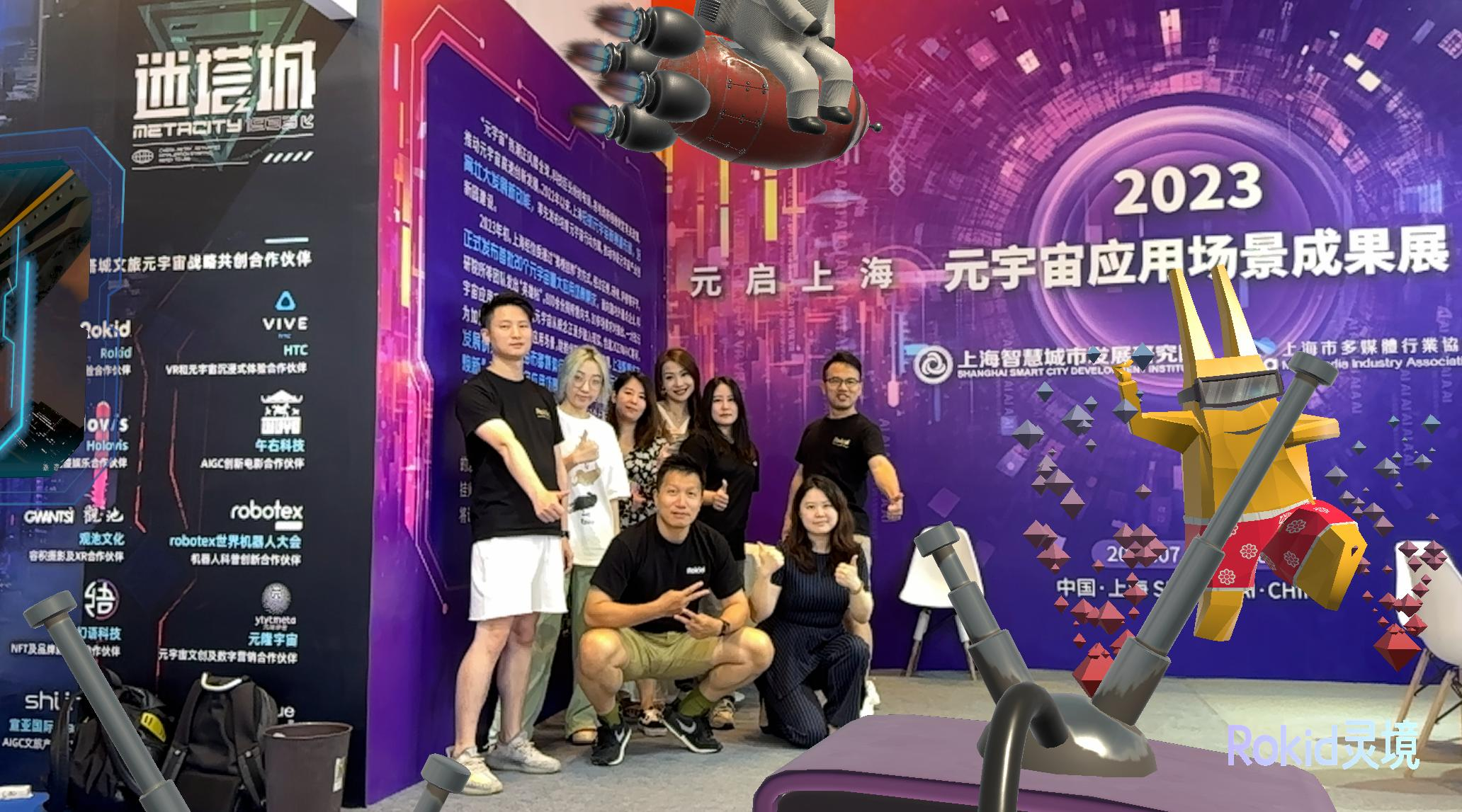 本次世集文旅官宣的合作伙伴之一AR头部厂商Rokid在本次展会上,为迷塔城展位进行了增强现实AR技术支持,观众可以通过Rokid眼镜看见迷塔城与各合作伙伴共创成果展示。