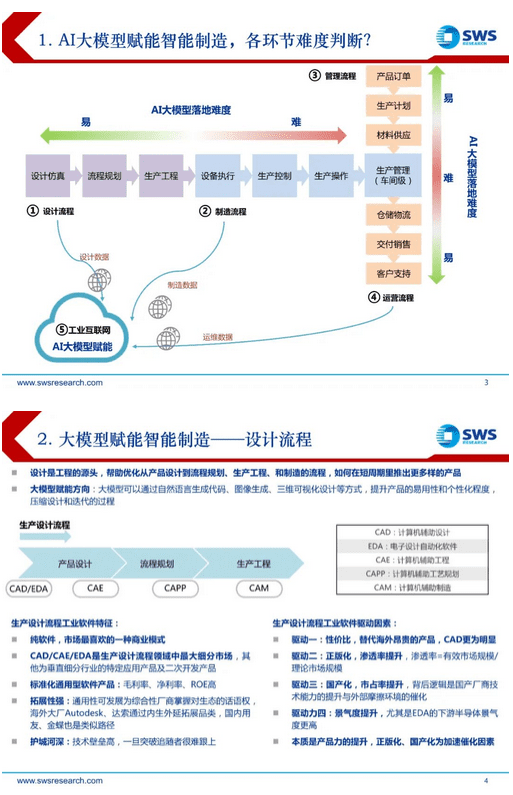 一、AI大模型赋能智能制造,各环节的应用方向及难度判断