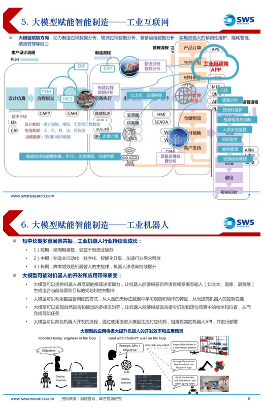 工业机器人:难度相对较低。大模型可以提供机器人最高层的推理决策能力,根据自然语言或多模态输入自动生成控制指令;从无标注数据中学习观测和动作的特征,提高机器人的控制性能;可以简化机器人开发的流程中国数字化转型网www.szhzxw.cn