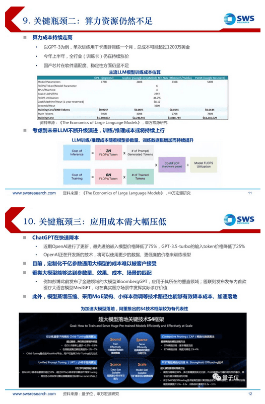 关键瓶颈三:应用成本需大幅压低。工业领域定制化千亿参数大模型成本难以接受,但垂类大模型有用武之地