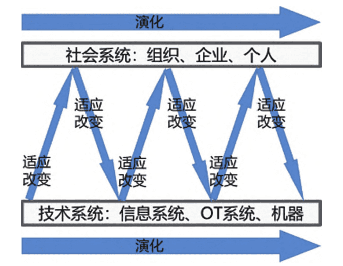 如果从社会物质性实践(sociomaterial practices)的角度看待组织的演化,通向更高MOM能力成熟度水平的阶梯,是组织文化、制度、程序、个人与技术系统互相形塑、从旧秩序建立新秩序、形成最佳配合关系的实践过程,如图2。