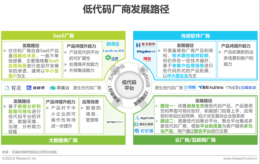 多类型厂商入局低代码平台,基于厂商基因延展差异化竞争