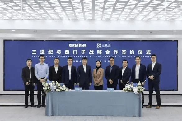 3月3日,西门子与南京三迭纪医药科技有限公司(三迭纪)签署战略合作协议,双方将基于西门子先进的产品和数字化解决方案,在药片增材制造数字化实验室、预防性维护、制药连续性生产等领域开展合作,建立长期战略合作关系,并将共同推进中国制药技术的连续化、数字化和智能化发展。