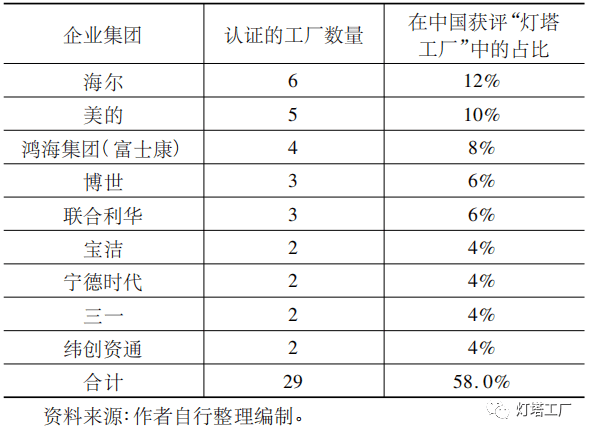 表4 中国企业集团获评“灯塔工厂”认证数量及占比
