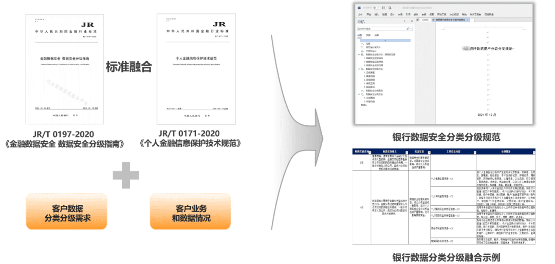 企业可以参考上述分类分级的实施指南,结合企业自身的业务、管理、数据保护等需求,制定企业使用的分类分级标准(下图以金融行业为例)。