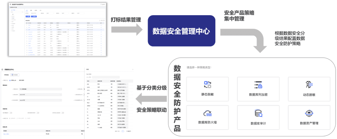The data asset security management platform can help organizations comprehensively, deeply and systematically sort out the status quo of data assets within the organization, discover and locate sensitive data, automatically complete classification and classification, and form a data asset catalog, which helps users build a data security protection system and adopt different data security protection strategies for different categories and secret levels of data. At the same time, through the standardized API interface, the platform can output the classification and classification information of data assets, deeply linkage with data security technology tools (such as data encryption, data desensitization, watermarking, firewall, etc.), and formulate refined and targeted data security policy management and control on key business scenarios and nodes, so as to fully realize data protection. Prevent data leaks.